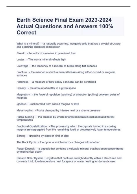 Read Online earth science final exam questions and answers Reader online is a convenient and frugal way to read earth science final exam questions and answers you love right from the comfort of your own home. Yes, there sites where you can get Reader "for free" but the ones listed below are clean from viruses and completely legal to use.